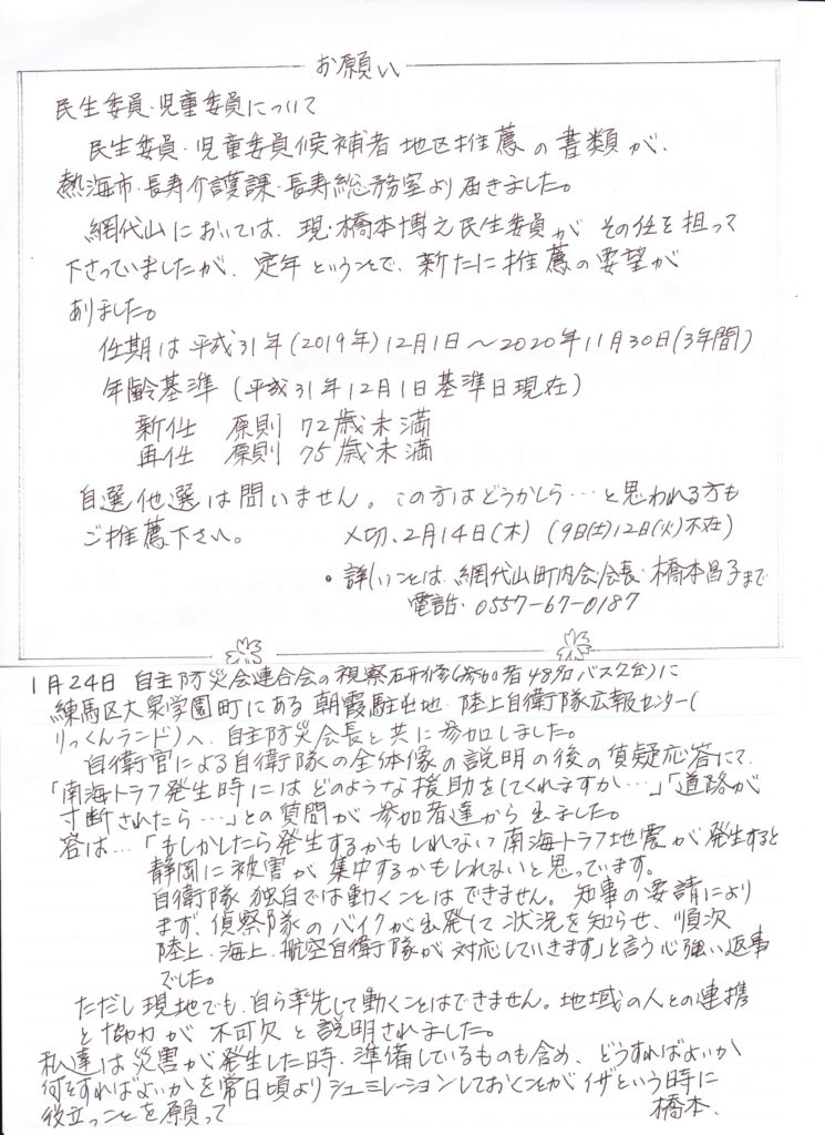 網代山町内会の皆さま 網代山通信No.162をお届けします。 立春を過ぎたと...