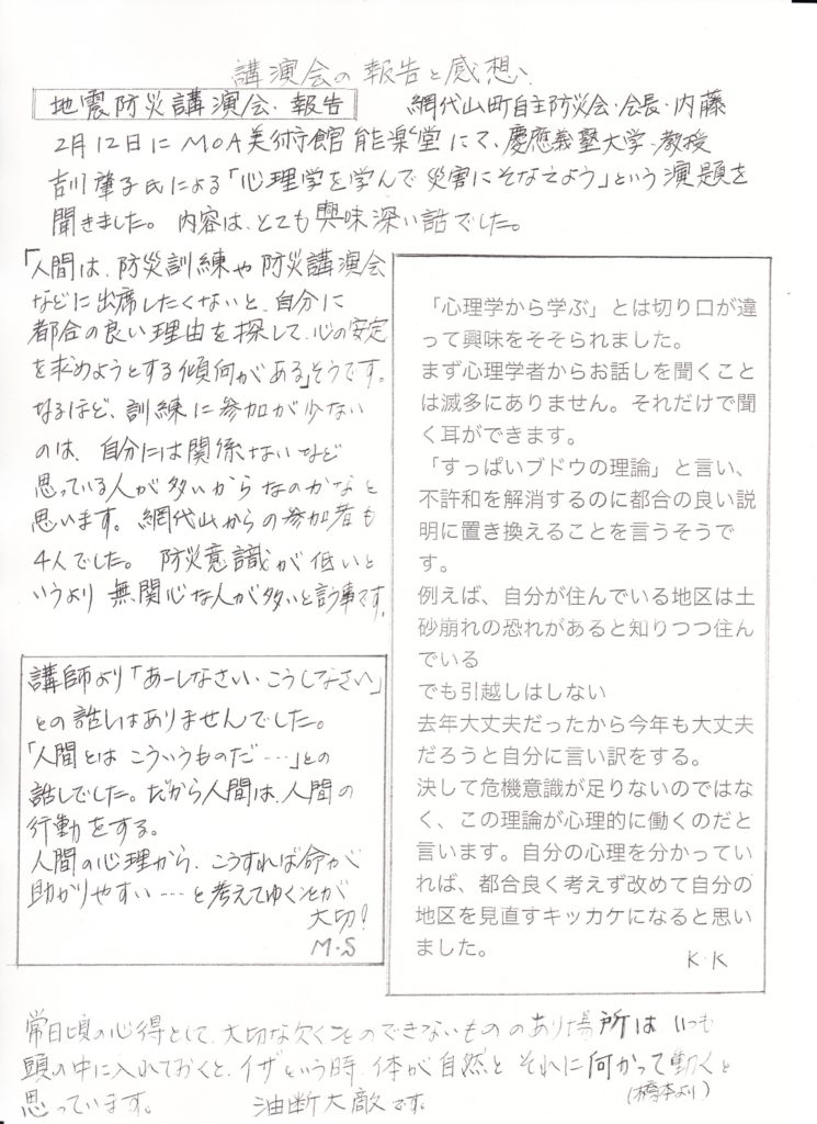 2019年3月10日 網代山町内会 役員一同