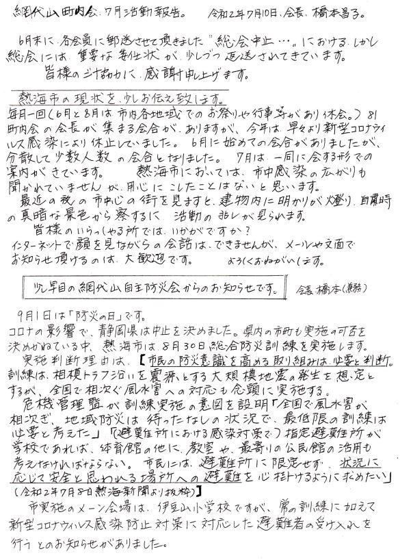 No.88 令和2年7月度活動報告