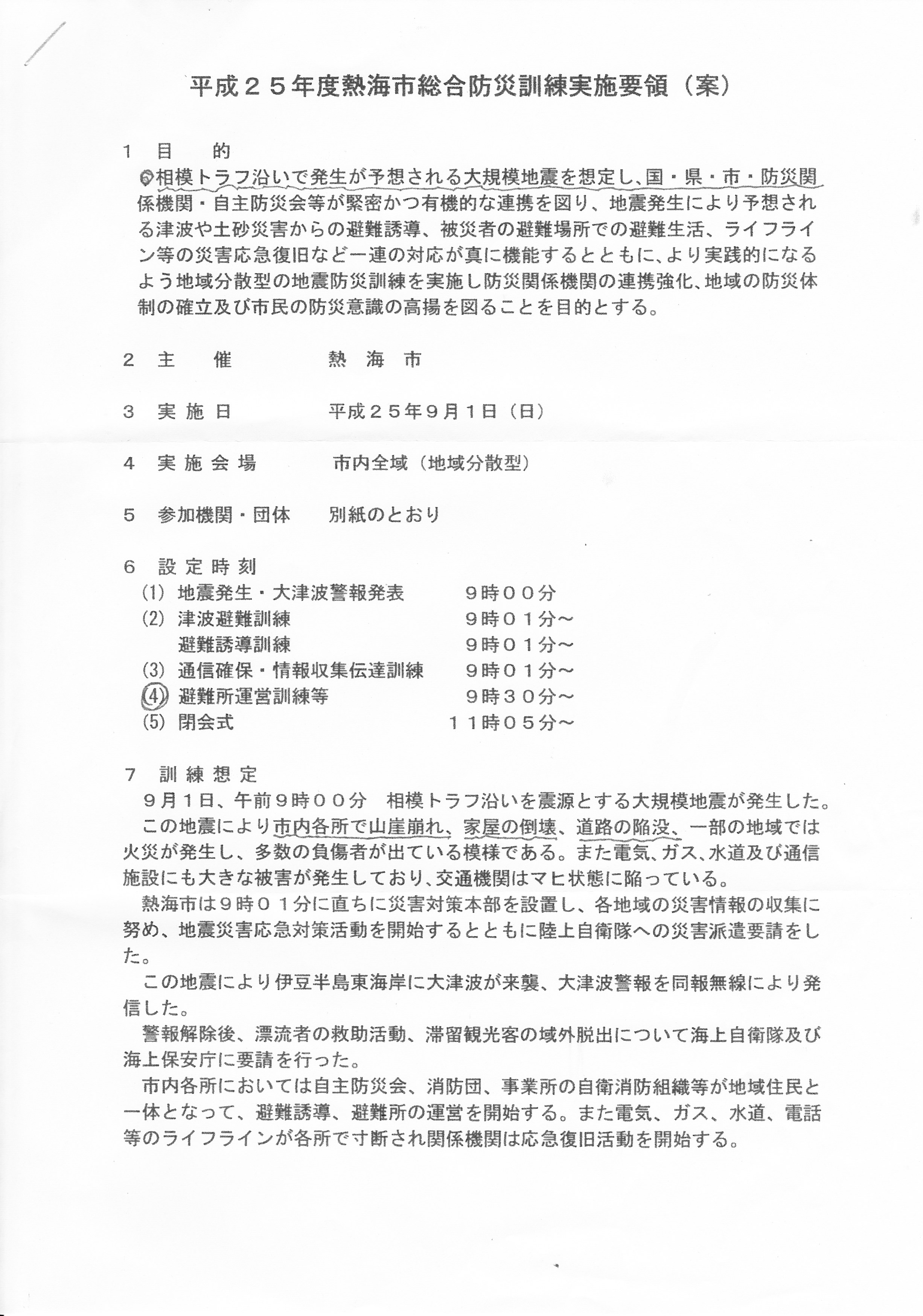 (平成25年度熱海市総合防災訓練実施要領(案)を添付します。参照ください。)