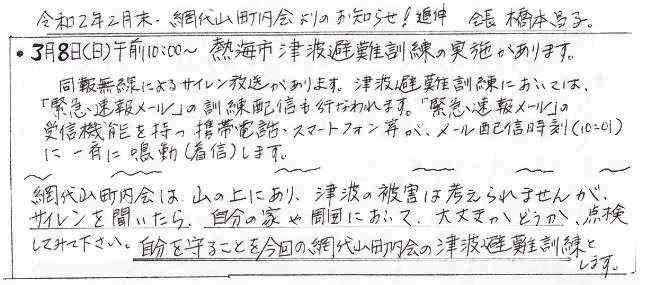 網代山町内会の皆さま 令和8年(2026年)明けましておめでとうございます。網...