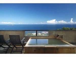 相模灘一望の露天風呂付き客室。晴れた朝の湯船から見る日の出は格別。